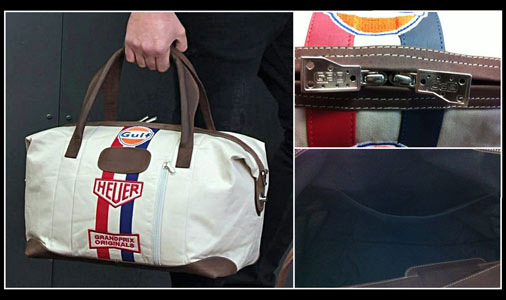 Grand sac de voyage Gulf Vintage Matériel : 70% coton, 30% cuir de vache Toile canevas résistante et imperméable sur l’ensemble du sac Poignées, fond du sac et bordures de fermeture, en cuir doux antique Deux poches intérieures - Deux poches zippées à l'extérieur Sangle longue de transport - Pieds en acier Dimensions LxHxP : 55 x 38 x 25 cm