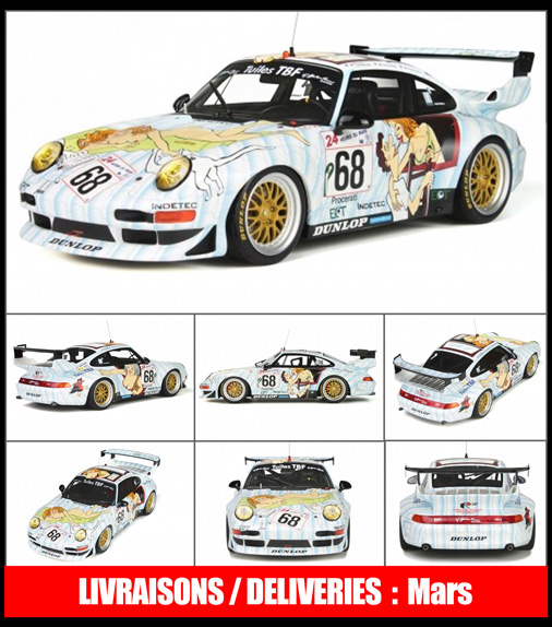 Précommande Porsche 993 GT2 Wolinski n°68 - 24h du Mans 1998 1/18 - GT Spirit GT729 Edition limitée - 911 exemplaires 119,95 € TTC / Incl. Taxes