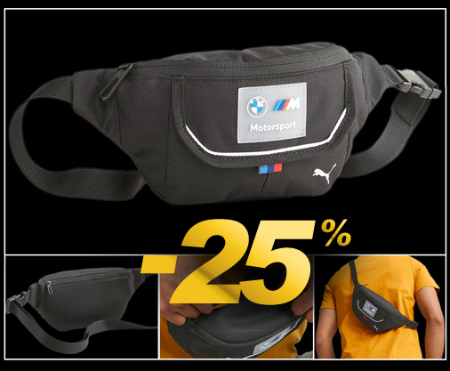 Sac banane BMW Motorsport by Puma Compartiment principal zippée - Sange réglable - 2 poches à l’avant - 1 poche intérieure 1 poche arrière - Couleur Noir - Dimensions 25 x 12 x 7 cm Puma 079845-01