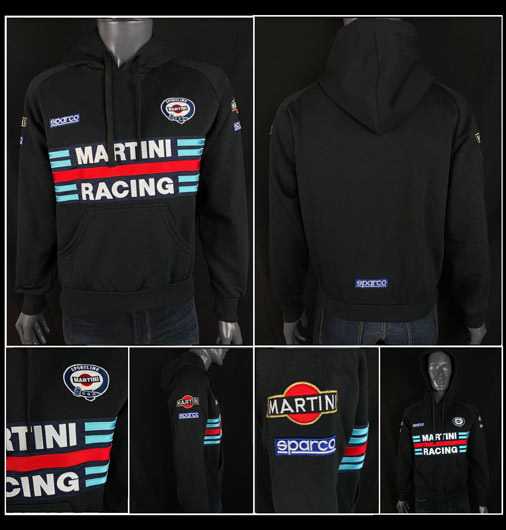Hoodie homme Martini Racing Sparco Grande poche devant avec 2 entrées latérales - Capuche avec lacet Couleur noir - Matière 35% Coton / 65% Polyester Sparco 01279MRNR 89,95 € TTC / Incl. Taxes