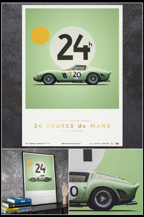 Affiche Ferrari 250 GTO n°20 - 24h le Mans 1962 Affiche originale 175g/m2 - Format 50 x 70 cm Cadre non fourni - Série limitée - 1000 exemplaires 119,95 € TTC / Incl. Taxes