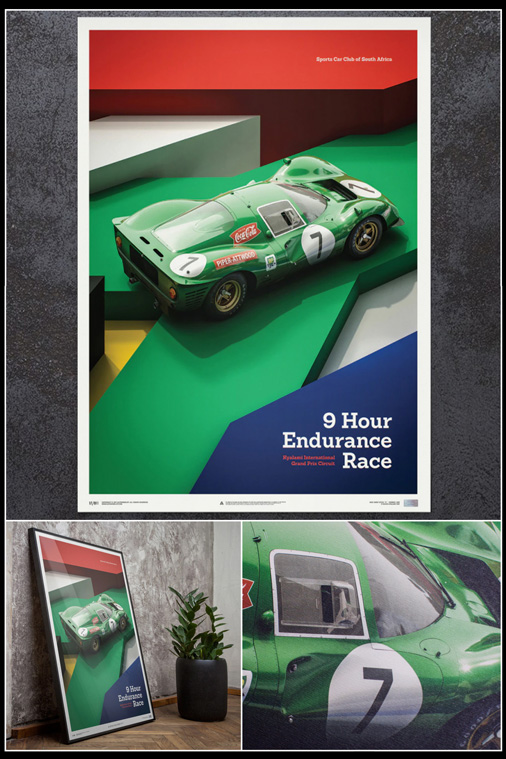Affiche Ferrari 412P n°7 - 9h Kyalami 1967 Affiche originale 175g/m2 - Format 50 x 70 cm Cadre non fourni - Série limitée - 1000 exemplaires 54,95 € TTC / Incl. Taxes