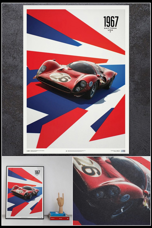 Poster Ferrari 412P n°26 24h Daytona 1967 50 x 70 cm