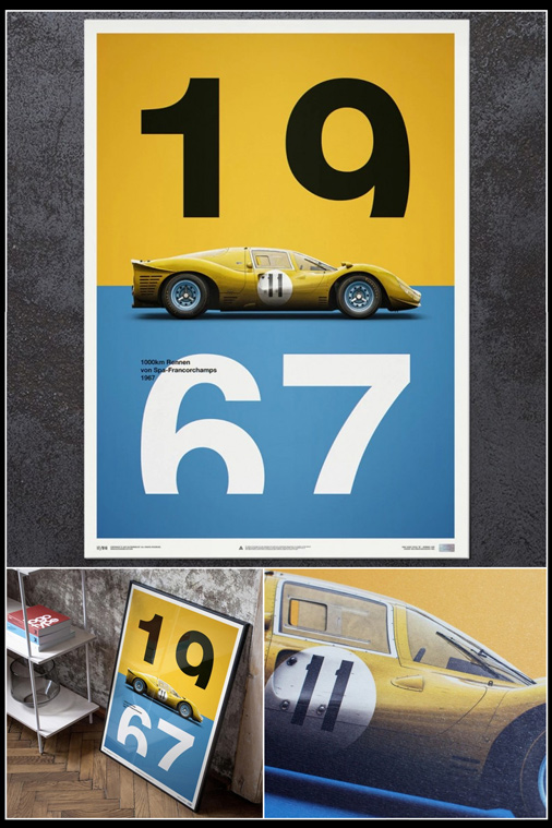 Affiche Ferrari 412P n°11 - Spa-Francorchamps 1967 Affiche originale 175g/m2 - Format 50 x 70 cm Cadre non fourni - Série limitée - 1000 exemplaires 54,95 € TTC / Incl. Taxes