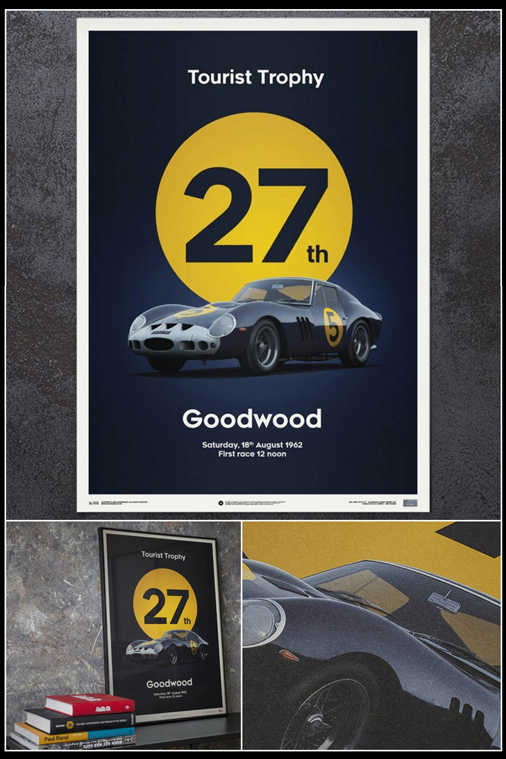 Affiche Ferrari 250 GTO n°5 - Goodwood TT 1962 Affiche originale 175g/m2 - Format 50 x 70 cm Cadre non fourni - Série limitée - 1000 exemplaires 54,95 € TTC / Incl. Taxes