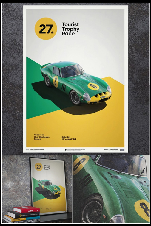 Affiche Ferrari 250 GTO n°8 - Goodwood TT 1962 Affiche originale 175g/m2 - Format 50 x 70 cm Cadre non fourni - Série limitée - 1000 exemplaires 54,95 € TTC / Incl. Taxes