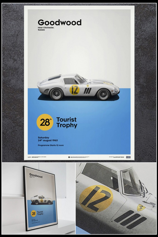 Affiche Ferrari 250 GTO n°12 - Goodwood TT 1963 Affiche originale 175g/m2 - Format 50 x 70 cm Cadre non fourni - Série limitée - 1000 exemplaires 54,95 € TTC / Incl. Taxes