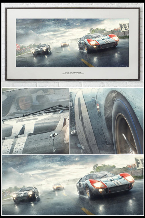 Luxury Frame Artwork Ford GT40 - 24h Le Mans 1966 50 x 24 cm