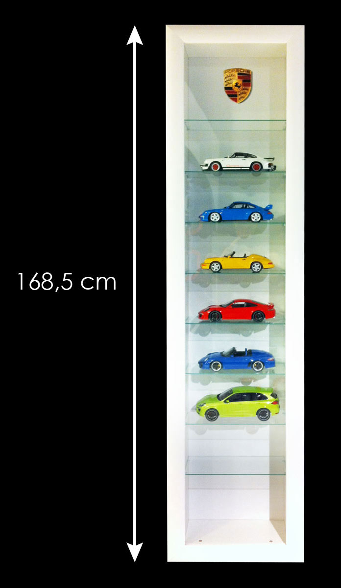 Vitrine murale idéale pour 9 miniatures Porsche à l'échelle 1/18ème.