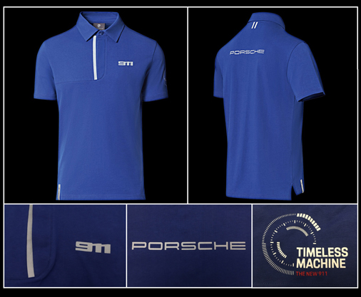 Polo homme Porsche 911 Timeless Machine Edition limitée pour la sortie de la type 992 Couleur bleu / détails réfléchissants - Matière 100% Coton doux au toucher Porsche WAP946K