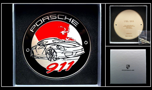 Badge de Grille Porsche 911 Coloris: rouge / noir / argent - Matière : Cuivre Diamètre 9,5 cm - Made in Germany - Porsche Design WAP0500110G Edition limitée - 2015 exemplaires numérotés