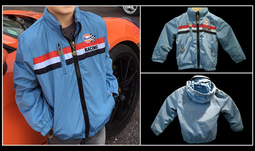 Veste Enfant Gulf Racing Matière 100% Polyester / doublure 100% Coton Fermeture éclair distincte et solide Capuche incorporée dans le col - Couleur bleu clair 49,90 € TTC / Incl. Taxes