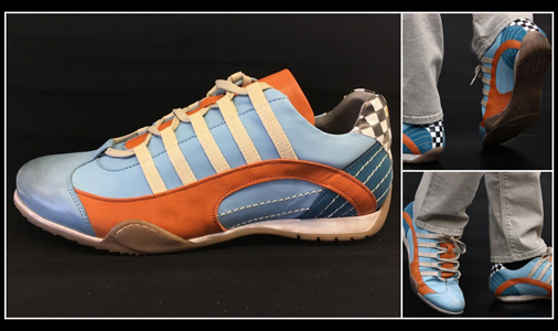 Chaussures pour homme Sport Sneaker Doublure et renforts cuir - Couleur bleu Gulf / orange Livré avec 2 paires de lacets : ivoire et bleu Gulf Matière 100% cuir / semelle caoutchouc Made in Italy 179 € TTC / Incl. Taxes