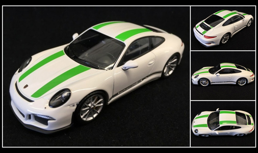 991 R Modèle de présentation - Genève 2016 Blanche / Bandes vertes 1/43 - Minichamps CA04316099 Edition limitée - 300 exemplaires numérotés
