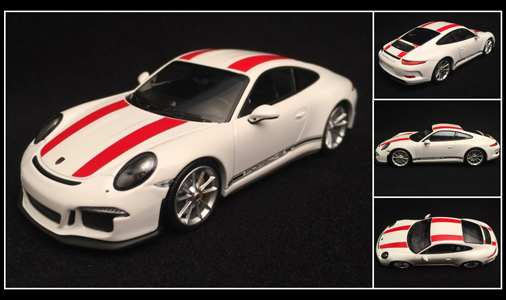 991 R 2016 Blanche / Bandes latérales rouges 1/43 - Minichamps 410066221 Edition limitée - 336 exemplaires