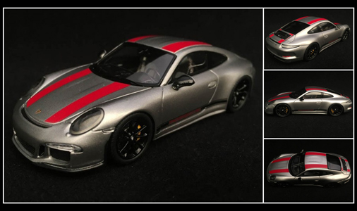 911 R 2016 Gris / Bandes rouges 1/43 - Spark WAX02020050 Edition limitée - 991 exemplaires