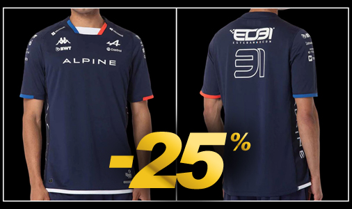 T-shirt homme Esteban Ocon Alpine F1 Matière 100% Polyester - Couleur Bleu Marine Kappa 381Z62-A04