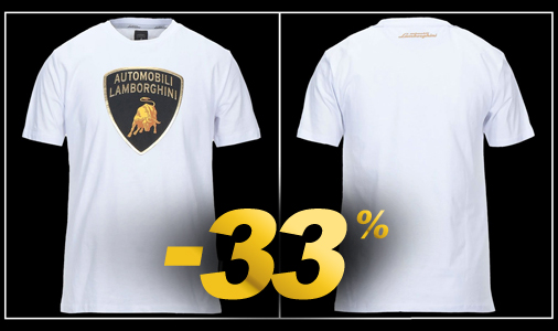 T-shirt homme Lamborghini - Tailles M / L seulement Matière 100% Coton - Couleur Blanc Lamborghini LCSWB7TQ-200