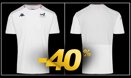 T-shirt homme Alpine F1 by Kappa Matière 60% coton / 40% polyester - Couleur Blanc Kappa 36193GW