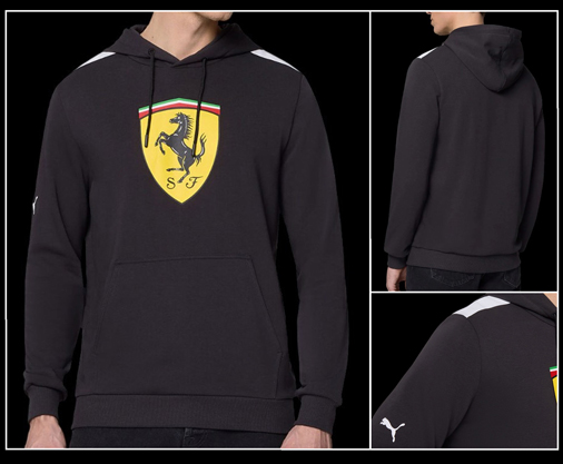 Hoodie homme Ferrari Matière 80% Coton / 20% Polyester - Capuche doublée & réglable Poche kangourou - 2 Couleurs disponible Puma 701232790 89,95 € TTC / Incl. Taxes