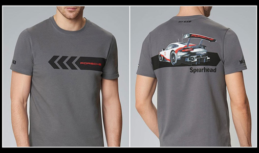 T-shirt mixte Porsche 911 RSR - Motorsport Racing Fan Couleur gris / noir - Matière: 100% coton Motif 911 Spearhead au dos - Porsche WAP453
