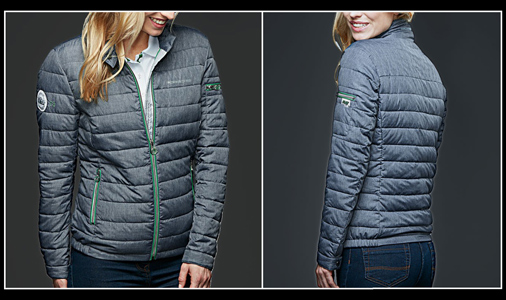 Veste femme Porsche Carrera RS 2.7 Veste matelassée légère - Rembourrage haute performance Couleur gris / vert vipère - Matière 66 % nylon / 34 % polyester Porsche WAP956H