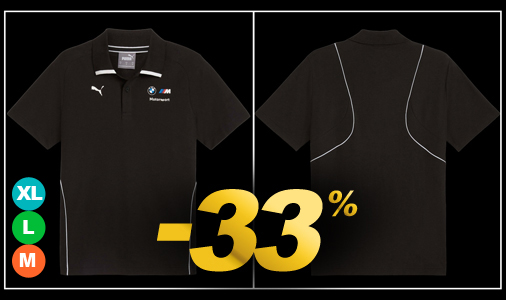 Polo homme BMW Motorsport - Tailles M / L / XL seulement Matière 52% Coton / 48% Polyester - Couleur Noir Puma 627462-01