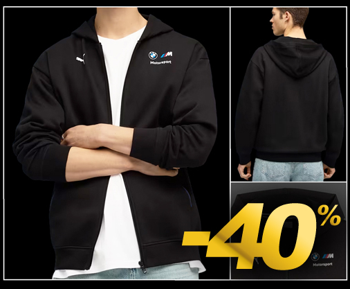 Veste à capuche mixte BMW Motorsport Matière 68% Coton / 32% Polyester - Fermeture zippée - 2 poches latérales Capuche fixe - Couleur Noir Puma 633049-01
