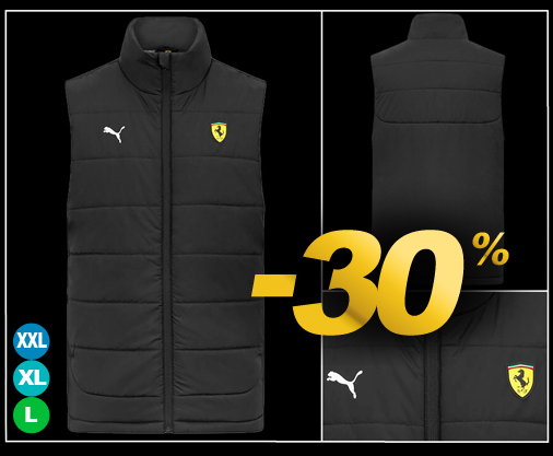 Veste sans manches homme Ferrari - Tailles L / XL / XXL seulement Matière 100% Polyester - Couleur Noir Fermeture zippée - 2 poches latérales zippées Ferrari 701223472-001