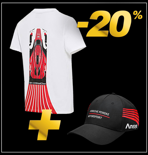 T-shirt mixte + Casquette Porsche 963 Penske Matière T-shirt 100% Coton - Matière Casquette 100% Polyester Couleur T-Shirt Blanc / Rouge - Couleur Casquette Noir / Rouge Taille Casquette réglable - Visière incurvée Porsche WAP192PPMS + WAP1900010RPMS