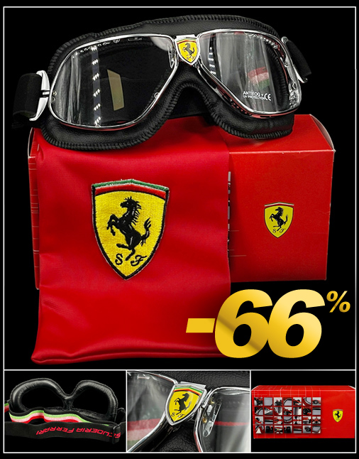 Lunettes de pilote vintage Ferrari Nannini Peut être porté ou apposé sur un casque - Tour de tête réglable - Bande élastiquée Protection de l'œil en synthétique transparent - conteur en cuir doux et naturel Système de changement de verre rapide et simple Made in Italy - Ferrari L0674