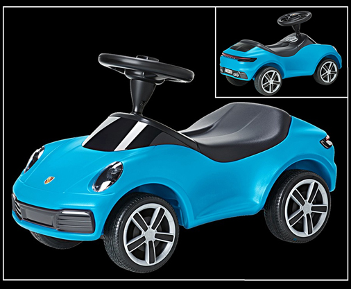 Porteur pour enfant Porsche 992 Dimensions: 68.5 x 30 x 37,5 cm - Poids 2,6 kg - Couleur Bleu Miami Volant avec klaxon facilement maniable - Siège ergonomique Pneus en caoutchouc mou peu bruyants - Protection anti-chute Porsche WAP0400010M0BP 119,95 € TTC / Incl. Taxes