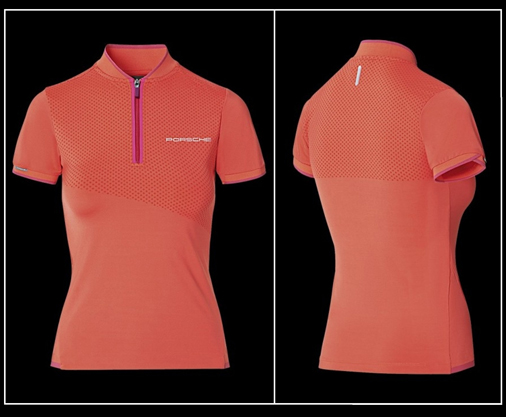 T-shirt femme Porsche Sport Tissu élastique, léger et respirant / Séchage rapide - Couleur Corail / Rose Matière 79% polyester / 21% élasthanne Porsche Design WAP538M0SP 79,95 € TTC / Incl. Taxes