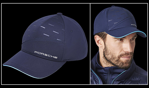 Casquette Porsche Sport collection Textile respirant et élastique Cool & Dry - Matière 100 % Polyester Flexfit Taille unique réglable par crans - Couleur bleu foncé / Liseré turquoise Porsche WAP5400010M0SP 39,95 € TTC / Incl. Taxes