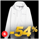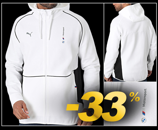 Hoodie homme BMW Motorsport Matière 73% Coton / 27% Polyester - Couleur Blanc - 2 poches latérales Capuche réglable - Fermeture zippée Puma 308017-02