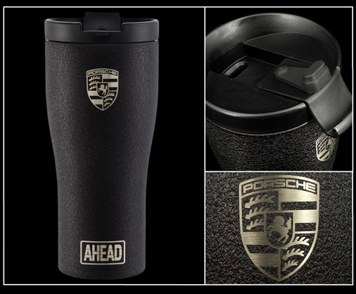 Mug Thermos Porsche AHEAD En acier inoxydable à double paroi - Couvercle étanche - Couleur Noir Mat Grainé Contenance 0,45 L - Dimensions 9 x 8,5 x 18,7 cm Edition limitée à 6000 exemplaires - Porsche WAP0501710SAHD 49,95 € TTC / Incl. Taxes