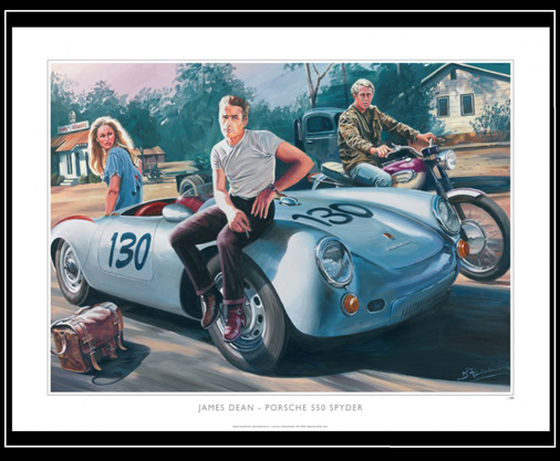Reproduction Illustration Porsche 550 Spyder James Dean - Ursula Andress - Steve McQueen 90 x 60 cm
