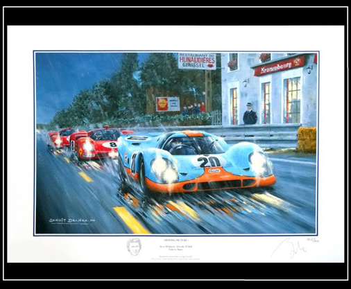 Reproduction Illustration Porsche 917 K n°20 Le Mans 1970 Illustration tirée d'une aquarelle de Benoît Deliège Edition limitée - 100 exemplaires numérotés et signés Format 50 x 70 cm 69,95 € TTC / Incl. Taxes