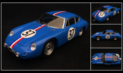 Then, 6 Spark models 1/43 which our favorite: the Porsche 356 Abarth nr 37 of the 24h of Le Mans 1961. The bodywork is beautiful. We fall in love! We can say that Abarth has managed to overtake Porsche on this point. Add to that a French team, led by Auguste Veuillet, first class winner at the 24 Hours of Le Mans in 1961 on a 356 SL, French drivers including Bubu (Robert Buchet), driver emeritus winner of multiple races, and a "Bleu France" color with a tricolor strip. What more? We even do not care about the final ranking ;-)