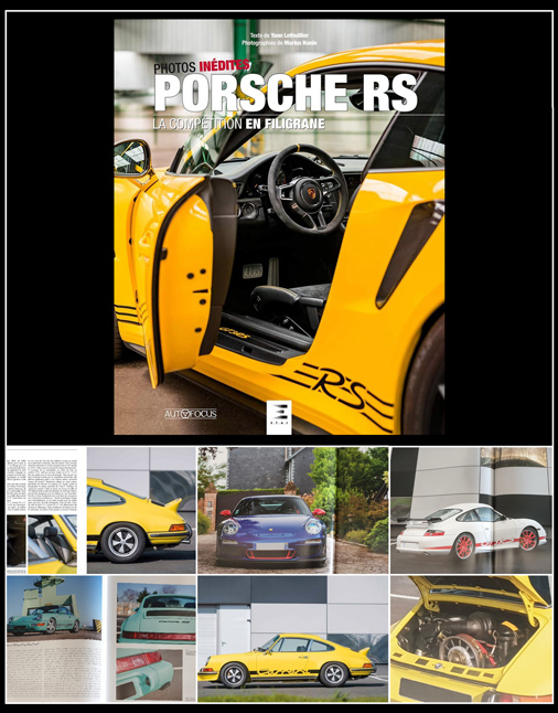 Livre "Porsche RS - La compétition en filigrane" Texte en français - 160 pages - 250 illustrations couleurs Photos inédites et texte complété de fiches techniques Auteur : Yann Lethuillier / Marius Hanin Dimensions : 29 x 24 cm - Année 2019 39 € TTC / Incl. Taxes