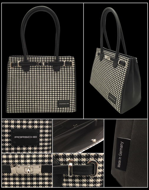 Sac à Main Porsche 911 Classic - Tissu Pepita Finition haut de gamme style Porsche 911 classique années 70 Grande contenance et nombreuses poches - Dimensions 32 x 26 x 15 cm Matière tissu pied de poule pepita / cuir noir - Produit en Allemagne Porsche Design MAP038028018 899,95 € TTC / Incl. Taxes