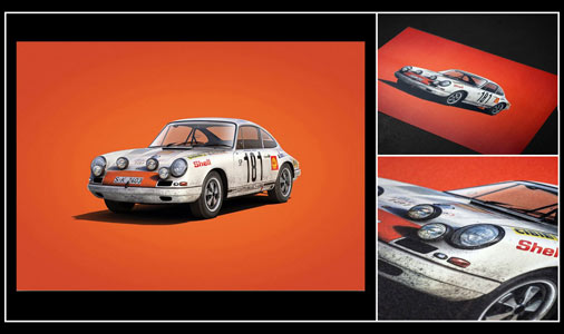 40# Poster Porsche 911 R Vainqueur Tour de France 1969 50 x 70 cm