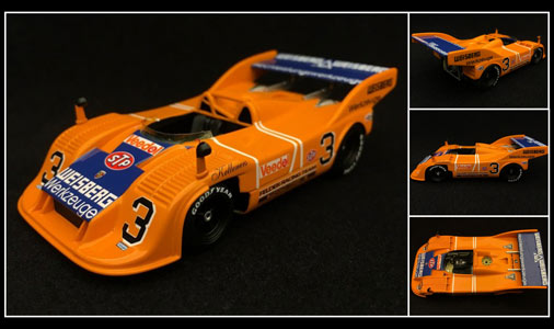 On commence par la 917/20 Jägermeister de chez Minichamps à un prix canon pour une miniature 1/18 de cette qualité : Carrosserie, cockpit, motorisation, tout est reproduit à l'identique !