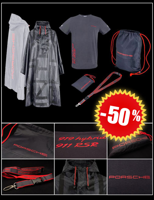 Porsche Fan Pack - Le Mans 2015 - Motorsport Collection 1x Sac à dos Porsche 1x imperméable Poncho pluie 1x Porte clé Porsche tour de cou 1x T-shirt pour homme Porsche 919 Hybrid / 911 RSR Porsche Design WAP799XXX0F
