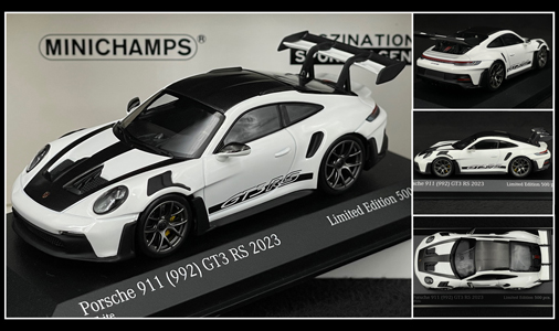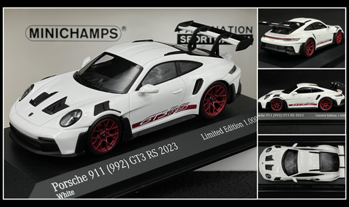 Porsche 911 GT3 RS 2023 Blanc / Bandes Rouges 1/43 - Minichamps 413062103 Edition Limitée - 1000 exemplaires 69,95 € TTC / Incl. Taxes