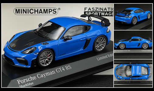 Porsche 718 Cayman GT4 RS 2021 Bleu Requin / Jantes Grises 1/43 - Minichamps 413069705 Edition Limitée - 200 exemplaires 69,95 € TTC / Incl. Taxes