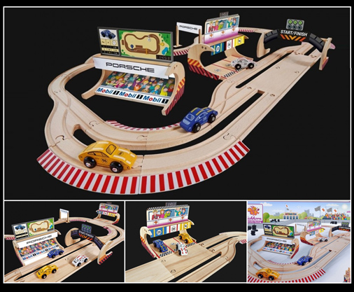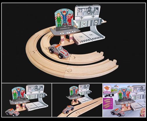 Circuit Porsche Racing en bois pour enfant Longueur de piste 350cm - Encombrement au sol 122 x 71 cm Avec 2 voitures et accessoires : Porsche 911 verte n°12 & rouge n°54 Stands et portique de départ - En bois PFC / métal - 31 pieces au total Eichhorn 109475850 59,95 € TTC / Incl. Taxes