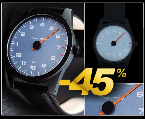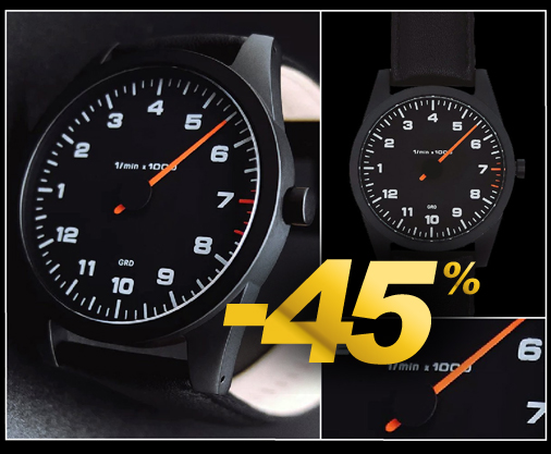 Montre compte-tours mono-aiguille Inspiration Porsche Mouvement quartz Ronda 762 Swiss-made - Bracelet cuir noir Boitier en acier inoxydable PVD noir - Saphir très résistant, traité anti-rayures et anti-reflets Etanche jusqu'à 10 ATM - Diamètre 43 mm - Garantie 12 mois Livré dans sa boite de présentation