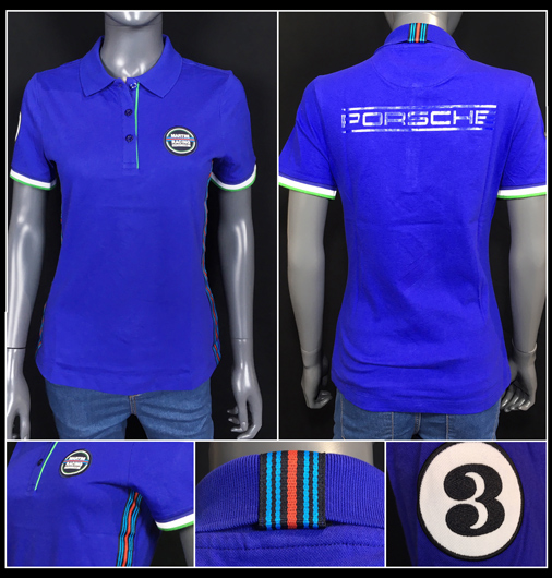 Polo femme Porsche 917 Martini Racing Couleur Bleu cobalt / détails vert - Matière 95 % coton / 5% elesthanne Porsche WAP921LMRH 79,95 € TTC / Incl. Taxes