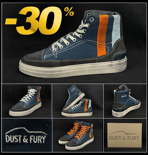 Chaussures homme Monaco Dust & Fury Matière Toile / Cuir - Doublure Cuir / Textile - Semelle Cuir / Caoutchouc - Couleur Bleu Finition vieillie Finish Line - Fabriquées à la main en Union Européenne 2 paires de lacets Blanc / Orange